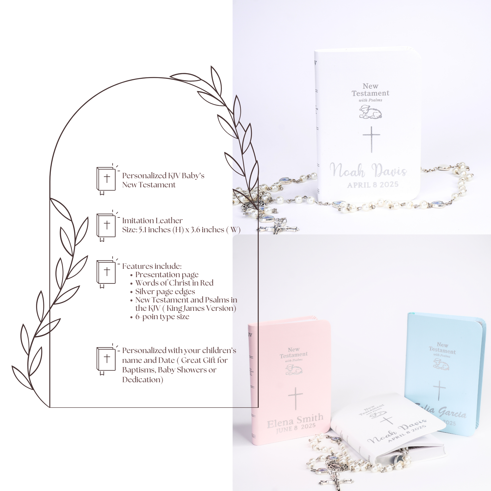 Make a meaningful addition to your special day with this personalized baby bible, perfect as a baby shower gift, first communion keepsake, or holy baptism gift. This Christian gift features a beautiful holy book design that can be customized as a holy bible dedication gift, creating a lasting sacred memento for any cherished occasion.